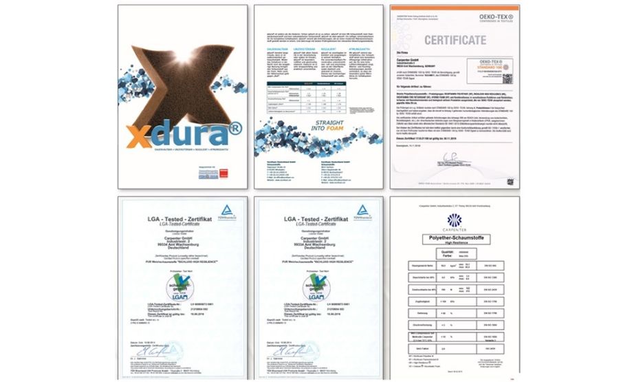použity pěny, které mají maximální hustotu jenž se používá na výrobu matrací (50 - 60 kg/m3). Vrchní část matrace která přichází do přímého kontaktu s tělem