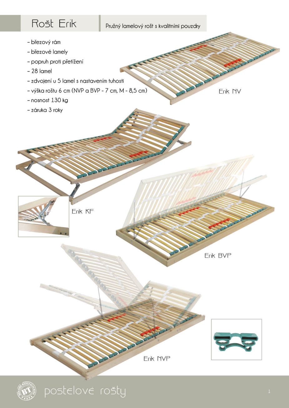 - kvalitní pouzdra s odpružením (zajištěno že rošt pruží po celé šířce jak má)